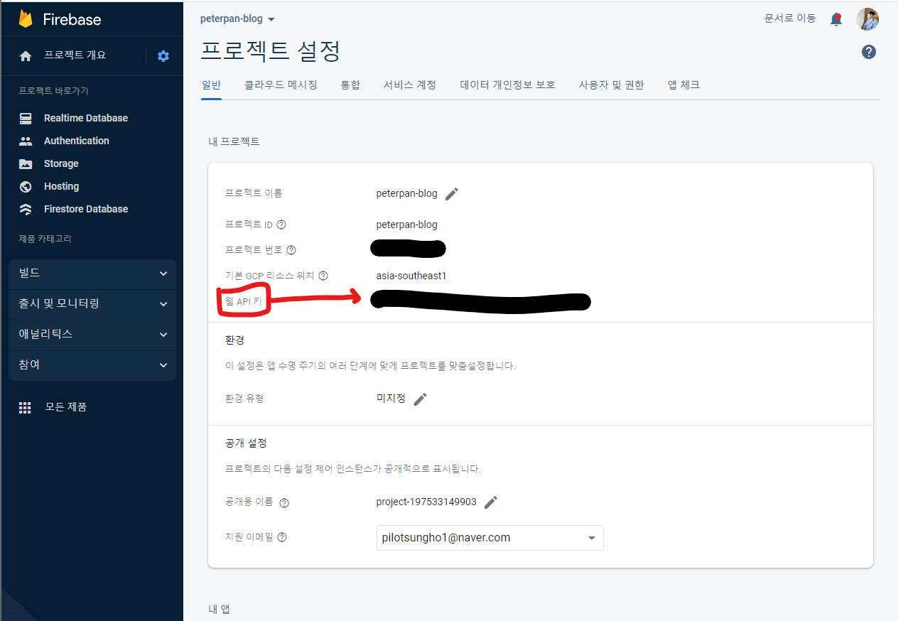 우선 API_KEY가 필요합니다. Firebase 계정 생성 후, Authentication을 시작한후 프로젝트 설정에서 확인하실 수 있습니다.