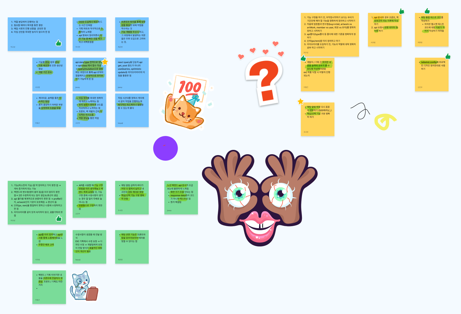 프로젝트가 끝나갈 무렵이 되서 그런지, 이번 KPT는 약간 이번 프로젝트에 대한 회고가 많았다.