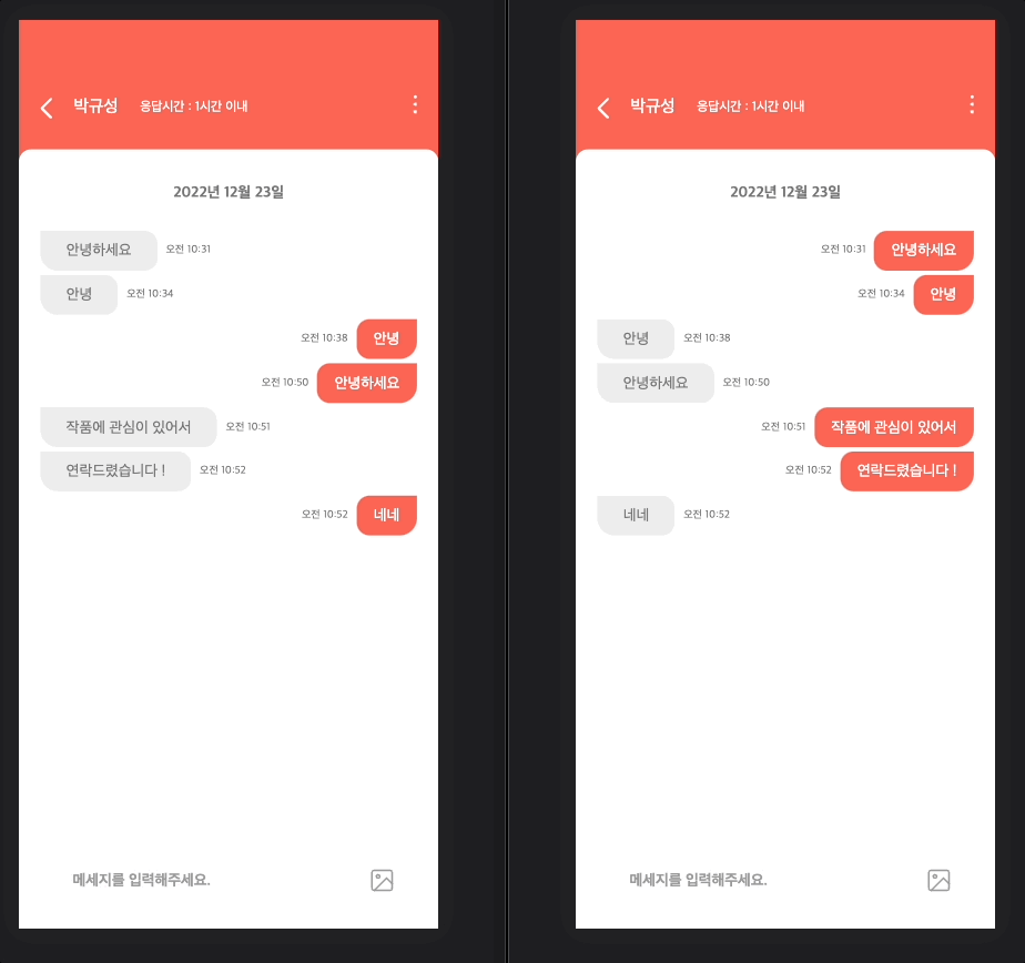 - 채팅방 목록과 채팅방 내부가 있습니다.