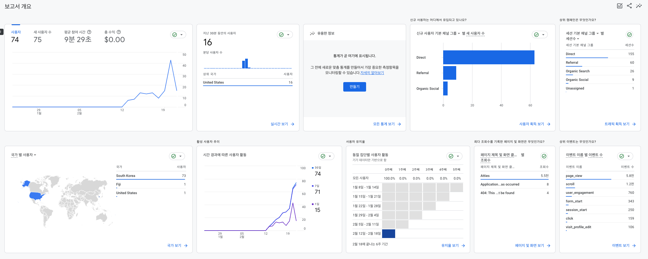- 기획자, 디자이너와 프로젝트 개발을 마무리한 이 시점부터 앞으로 어떻게 운영해 나갈 지에 대해 이야기를 나누었다. 오늘(22일 오전 00:31분)까지 75명의 유저가 접속하였다. 그중 작가 전환 횟수는 4회, 작품 등록 횟수는 0이다. 예상은 했지만, 이 정도의 수치일 줄은 몰랐다.