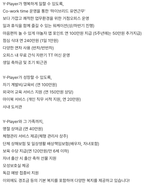 2. 와우 .. 혜택 및 복지만 봐도 야놀자가 최고의 회사란 걸 알 수 있다. 너무너무 가고 싶다.