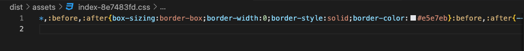 위 코드를 터미널에 입력하면 위 사진처럼 dist 폴더가 생성이 된다. dist폴더를 살펴보면, index.html은 기존 index.html과 동일하고, index-xxx.css와 index-xxx.js는 src안에 있는 css파일과 js파일을 난독화시켜 놓은 파일이다.