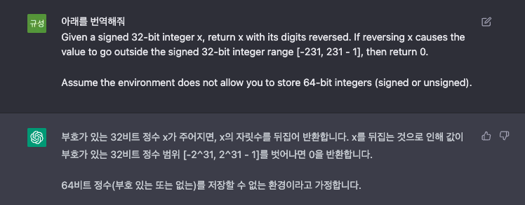 - 처음에는 문제에서 32-bit? 64-bit? signed?해서 뭔가 싶었다. 어려운 용어를 사용한 문제와 달리, 풀어보니 정말 쉬운 문제였다. 풀고나서도 '이게 맞다고?'라는 생각이 들었다.