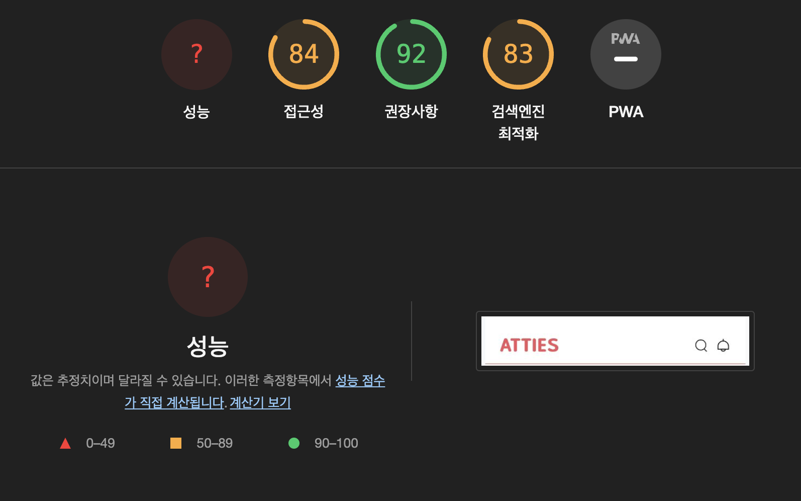 : Google Chrome에서 제공하는, 웹앱의 품질 개선에 도움을 주는 자동화 도구 입니다. 성능, 접근성, SEO 등 사이트에 대한 전반적인 진단을 할 수 있음