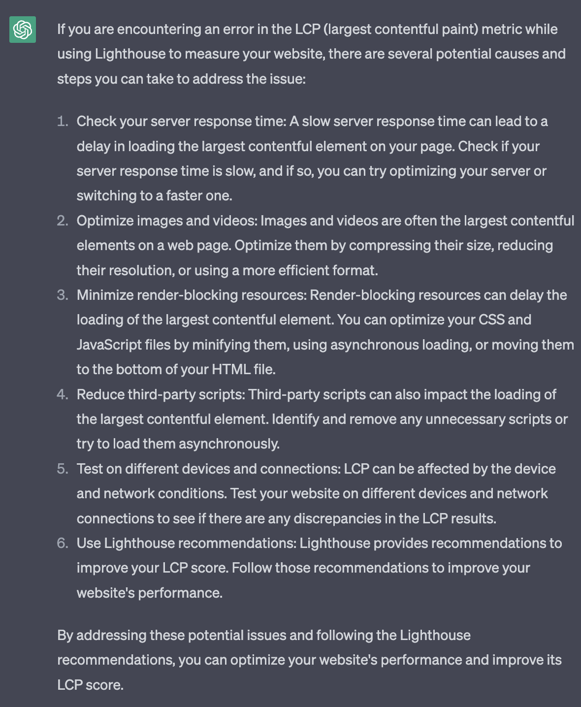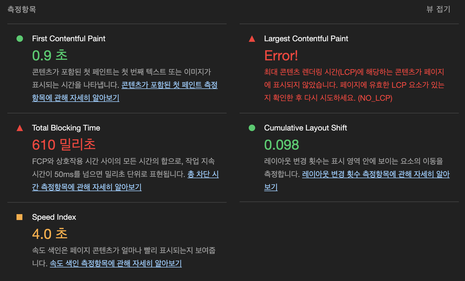 LCP측정이 Error가 떴다. 그래서 chatGPT에게 물어보니