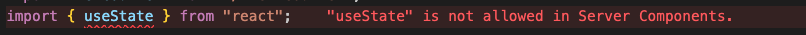 'use client'를 안 붙인 server 컴포넌트에서 훅을 사용하면 개발 서버에서 오류 발생