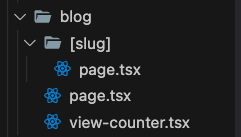 조회수를 측정하는 'view-counter.tsx'컴포넌트가 있다. 이 컴포넌트는 blog/pages.tsx에서 import 해주었다. view-counter.tsx는 다음과 같이 생겼다.