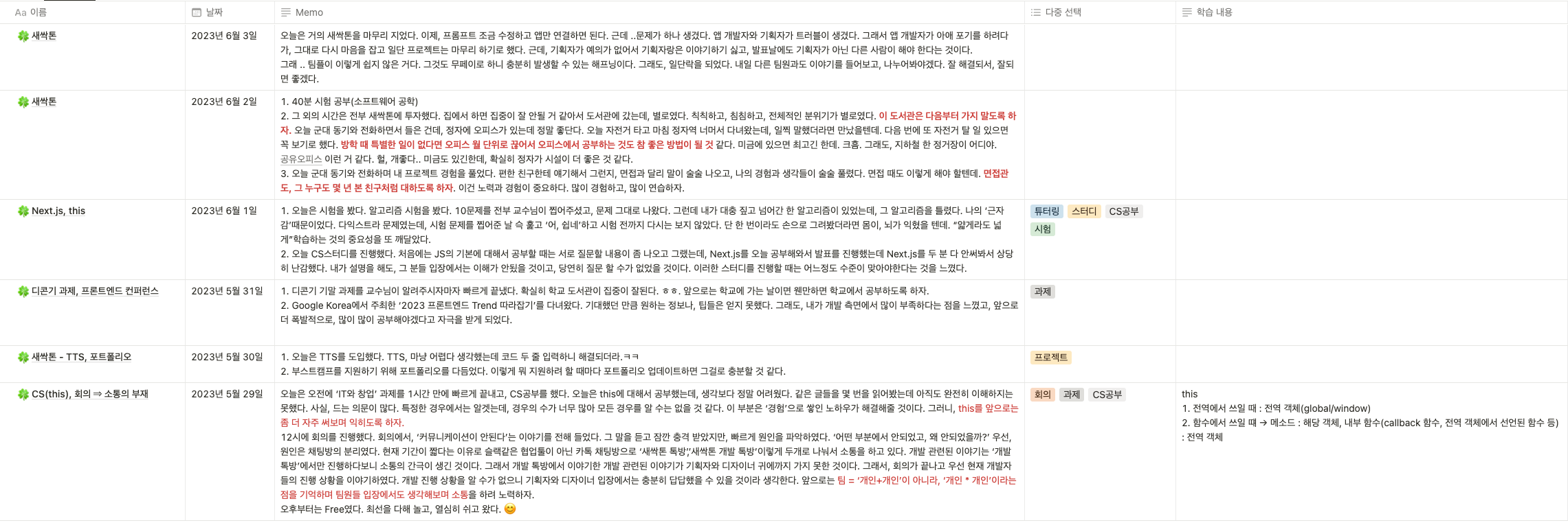 💭 1. 이번 주엔 어떤 일들이 있었고, 그 속에서 나는 어떤 것을 느꼈을까